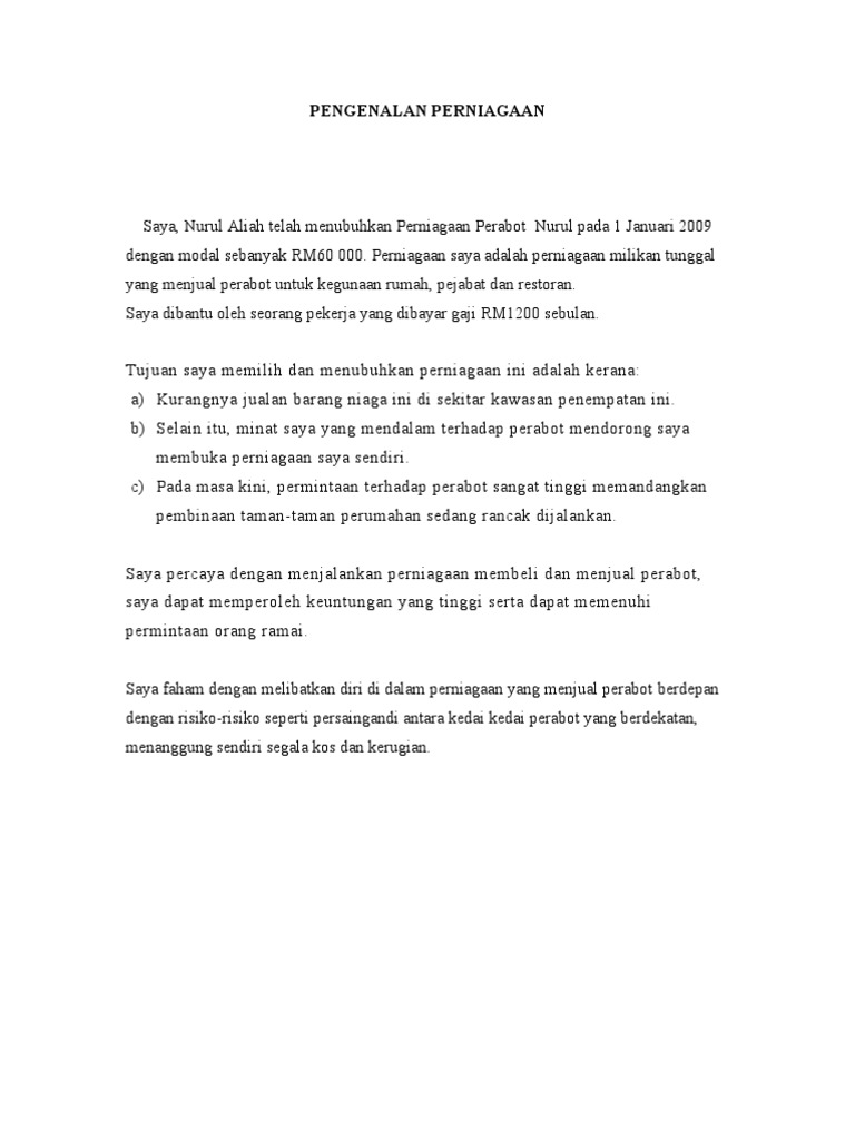 A Syarikat Perabot Budiman Sdn. 1Restoran-Risiko dalam perniagaan ini adalah kerugian yang diakibatkan oleh rosak dan. Contoh risiko mengikut jenis perniagaan adalah.